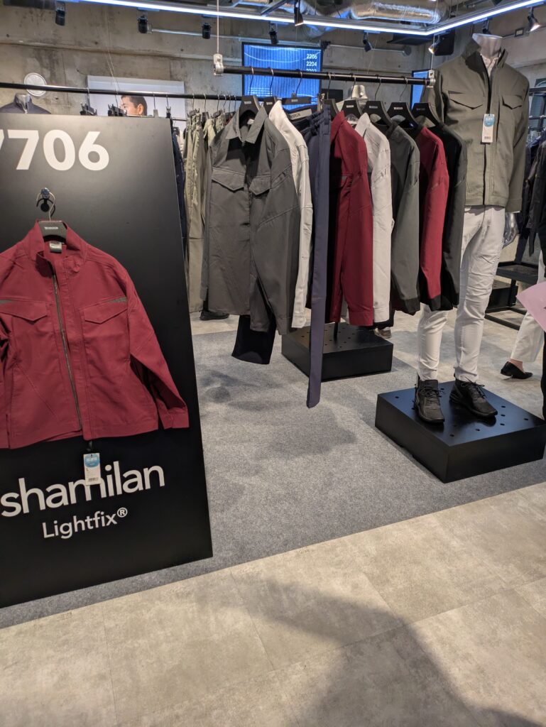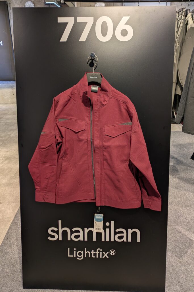 経糸にシャミラン、綿糸にライトフィックスを使用し、高い通気性と耐久性を保ちながら、人の動きに追従するストレッチ性でストレスのない着用感。